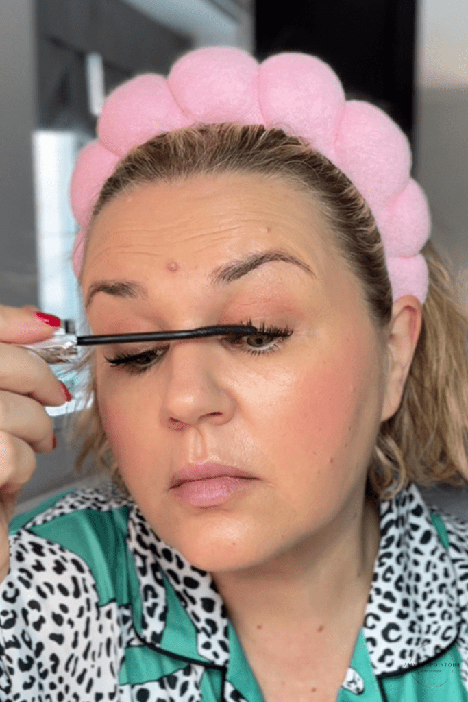 It has that milky, cool‑toned finish that’s everywhere right now, but still feels wearable and grown‑woman. Although I’m using a MAC lipstick here, this combination works with any cool‑toned pink nude you already own.